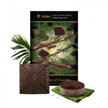 Con un delicado aroma a citronela, está perfumada con polvo de hormigas de limón. Para los paladares más refinados y aventureros. Perfecta para degustar este raro manjar. To'ak es conocido, con razón, como el chocolate más caro del mundo.